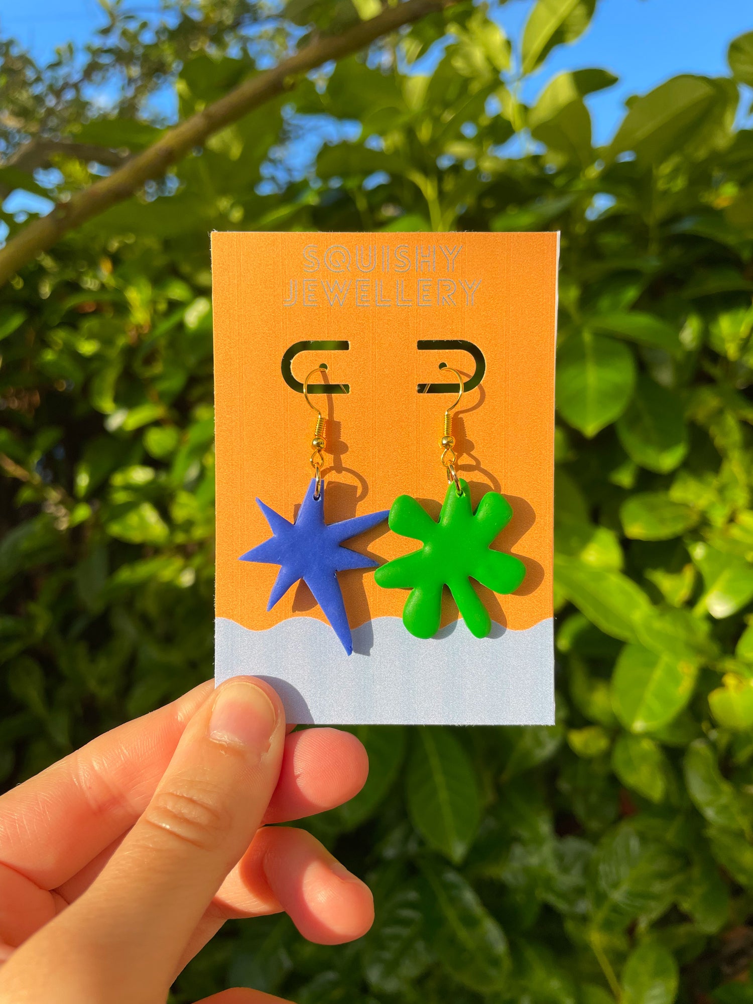 Blue and Green "Kiki & Bouba" Abstract Linguist Polymer Clay Womens Adult Earrings