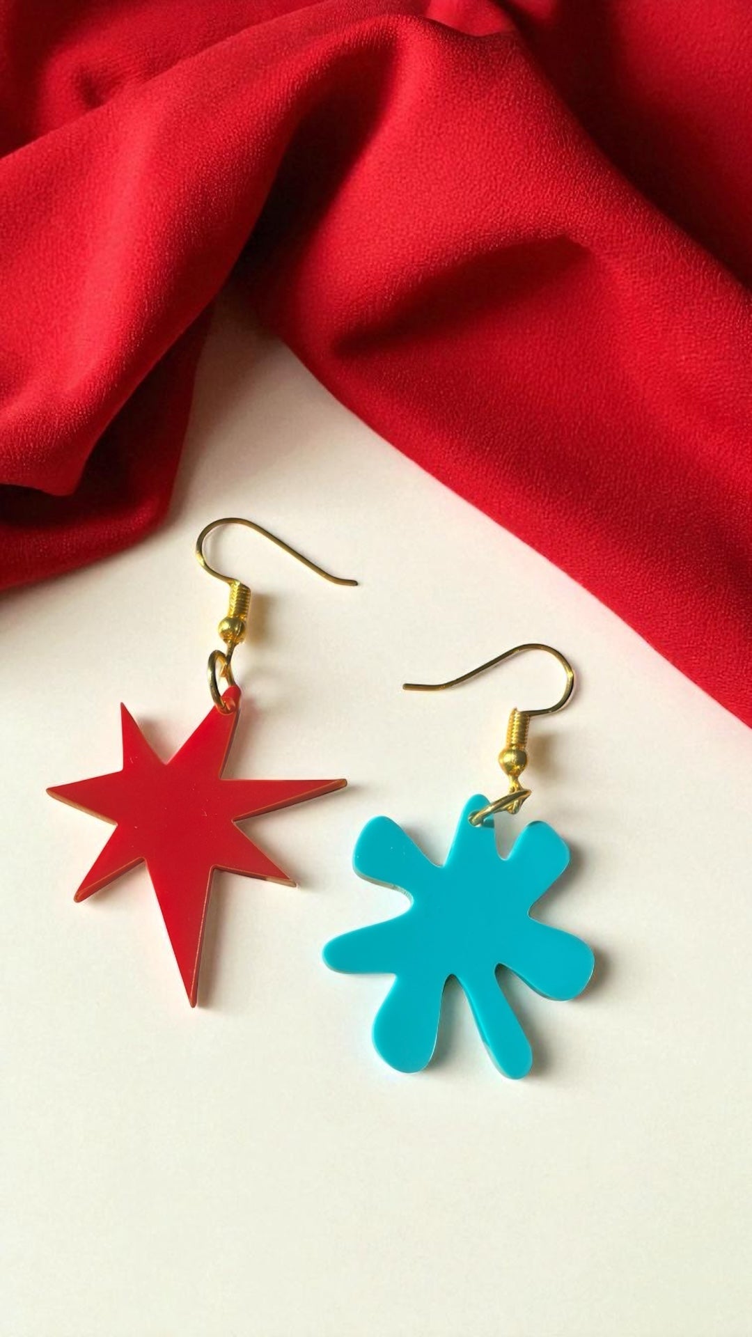 • Design: One earring features a jagged red shape representing “Kiki,” while the other showcases a smooth blue form symbolizing “Bouba,” capturing the essence of the Bouba-Kiki effect.